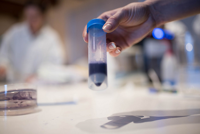 With BioShades we explore the potential of dyeing with bacteria as a less harmful alternative in TextileLab Amsterdam.